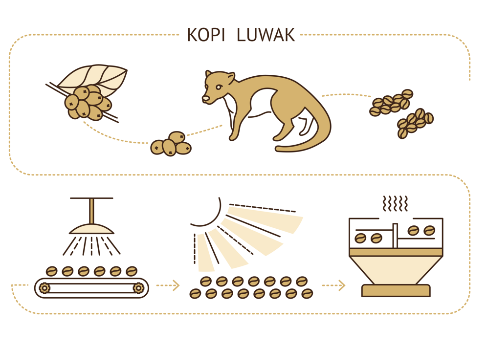 ובכן, אין פולי קפה העשויים מקקי, כך שאתם יכולים לנשום לרווחה. יחד עם זאת פולי הלואק הנחשבים למשובחים ביותר בעולם והעלות שלהם לא פחות מ 600$ עבור קילו 1 של פולים. הם עוברים תהליך הקשור בתהליכי העיכול של קופי הלואק.